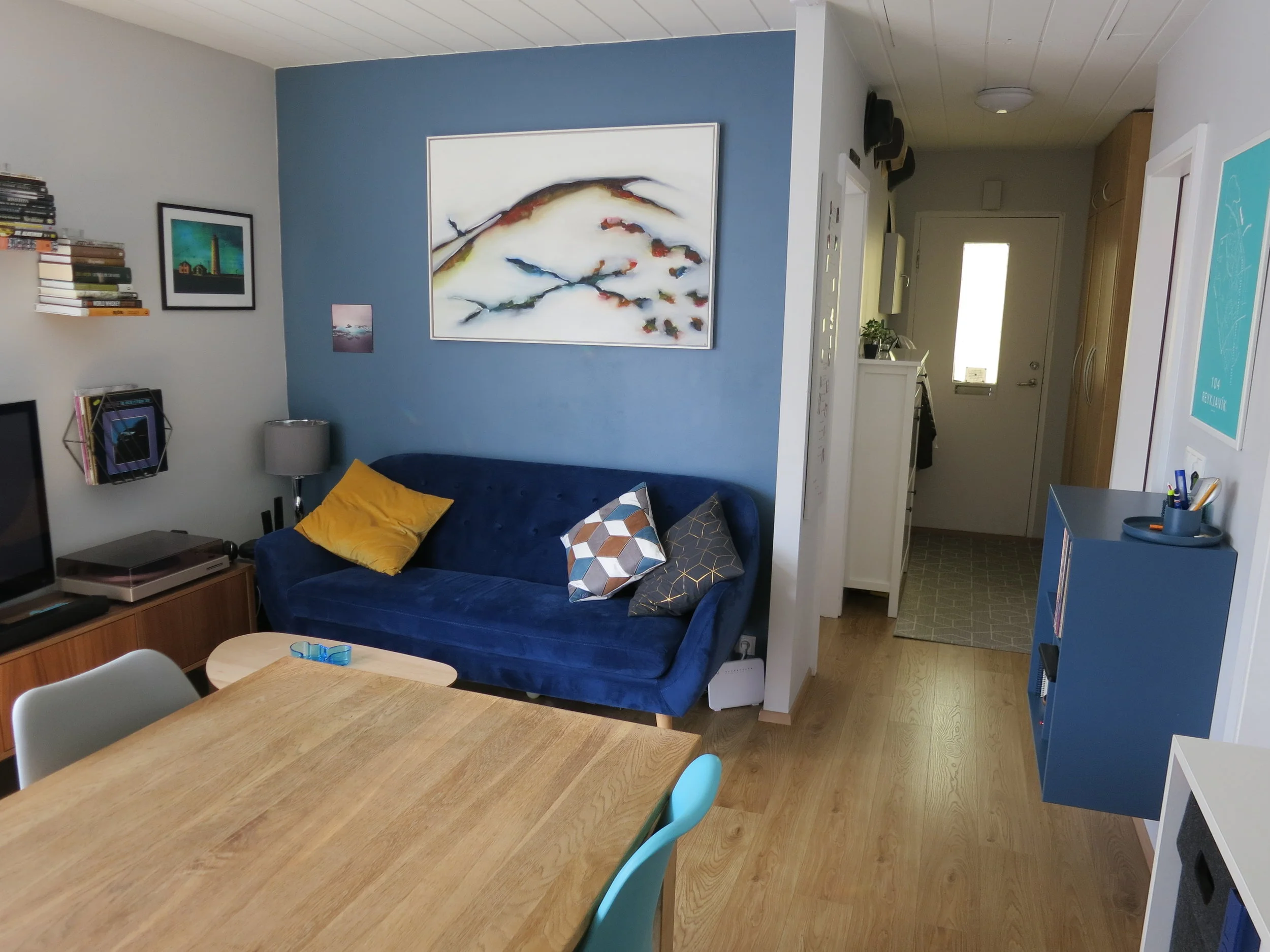 Eins og áður hefur verið nefnt munum við fara í framkvæmdir þegar fram líða stundir, en til að byrja með þurftum við aðeins að taka til hendinni til þess að gera húsið íbúðarhæft þannig að ég segi það beint út. Því byrjuðum við á lágmarksframkvæmdum til að geta flutt inn og á meðfylgjandi myndum má sjá að málning, gólfefni og smá flísabraml geta gert kraftaverk. Fyrir myndirnar eru teknar í desember um það leyti sem við fengum afhent og þær seinni eru teknar í vor þegar við vorum búin að koma okkur almennilega fyrir.